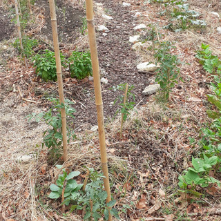 On ne peut pas planter n'importe quoi au milieu de l'été. Pas question de semer des tomates à cette saison et encore moins des aubergines ou des piments, poivrons. Leur période de végétation est beaucoup trop longue avant la fructification. Les froids de l'automne viendraient avant qu'ils puissent fournir quoi que ce soit. Par contre, on peut les mettre en pleine terre s'ils sont déjà bien développés. Dans notre camion de déménagement, j'ai embarqué une vingtaine de pieds de tomates que j'avais semé début juin, des courgettes, des concombres, des melons, des potimarrons, des potirons, des salades, des choux semés vers le 10 juillet en godets. Il y avait aussi quelques pots avec des piments et des poivrons bien développés, des aromatiques comme de la livèche, du thym, du romarin, de la sauge, de la menthe, de la mélisse, auxquelles il faut rajouter de la vigne en pot, des pieds de cassis, de groseilliers, de la consoude, des poireaux semés au printemps, de la patate douce et des plantes décoratives comme des sauges de Graham, géraniums, les diplodénias, jasmin et passiflore...
